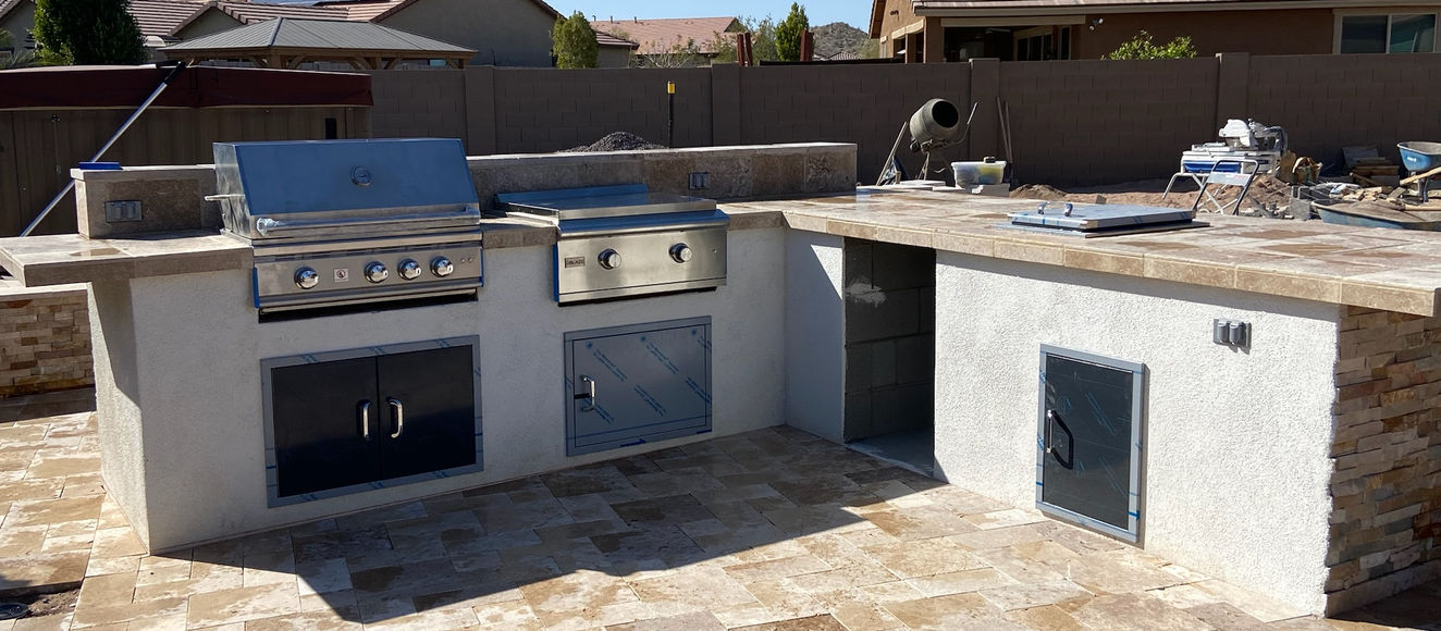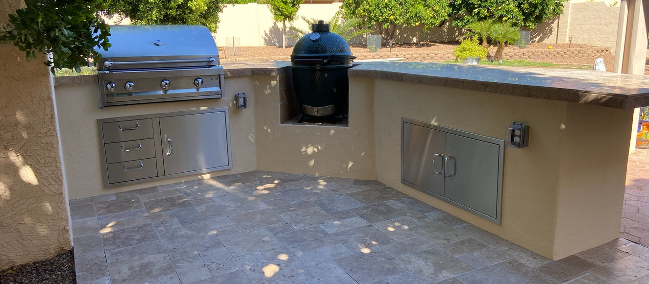 These outdoor kitchen projects were designed to meet the client's specific needs and style preferences. Depending on your needs, we incorporate gas grills, sinks, and ample counter space for food preparation. The space is perfect for entertaining guests or enjoying a family meal outdoors.